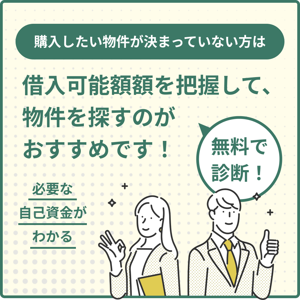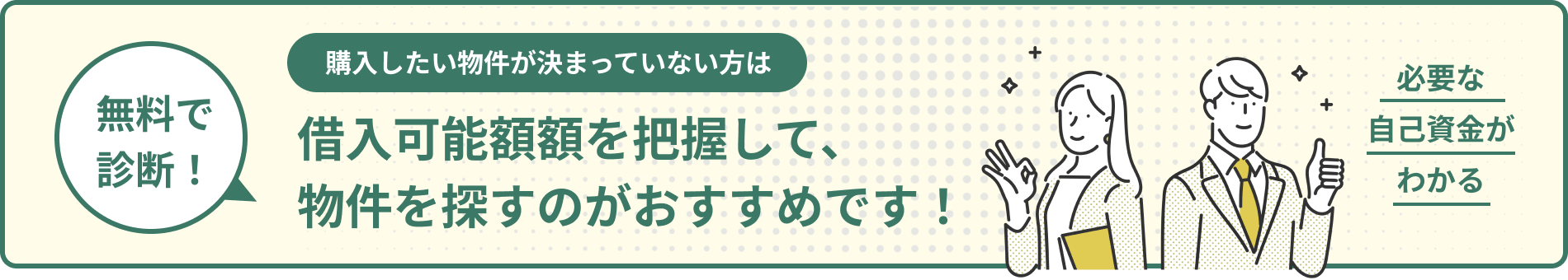 購入物件が決まってない方は、借入可能額の診断(無料)がおすすめ!