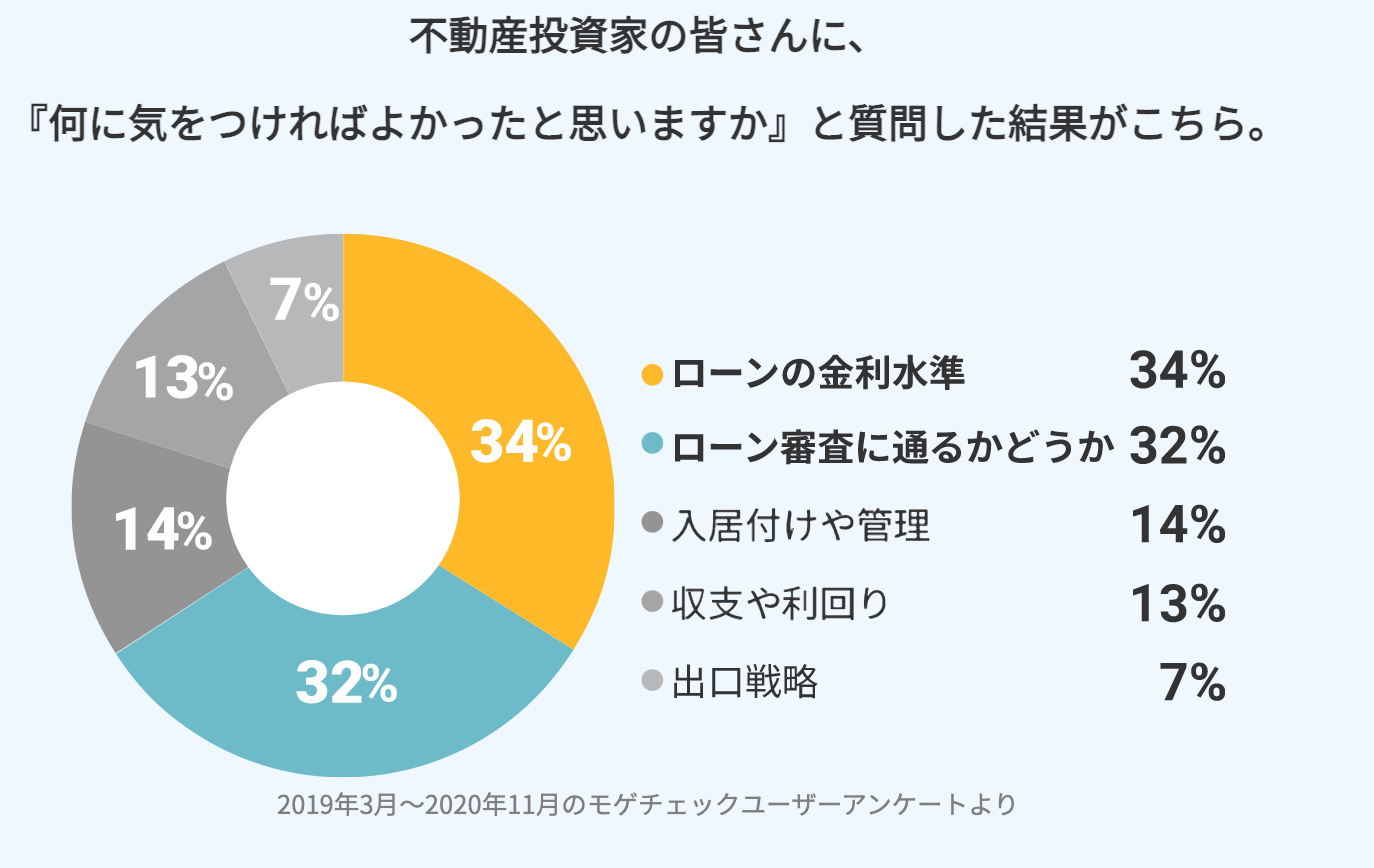 実際にインベースが実施したアンケートの結果、不動産投資家の66%がローンについて気をつければ良かったと回答しています。