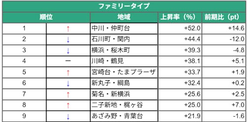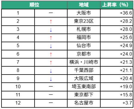 上位16エリアの上昇率が20%を超えており、シングルタイプ以上に賃貸ニーズの高さが伺えます。