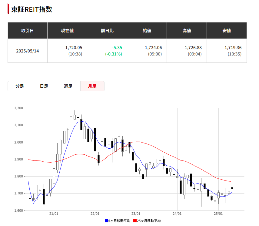 東証REIT指数は株価と同様に大きく下落しましたが、株価以上に反発して下落前を上回る水準での推移となっています。