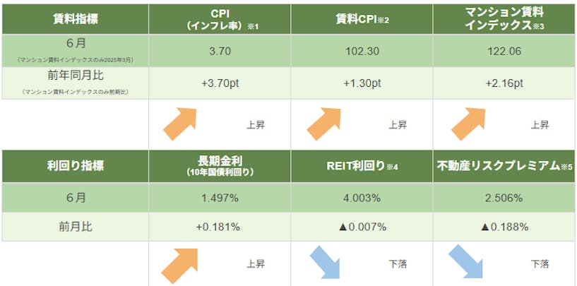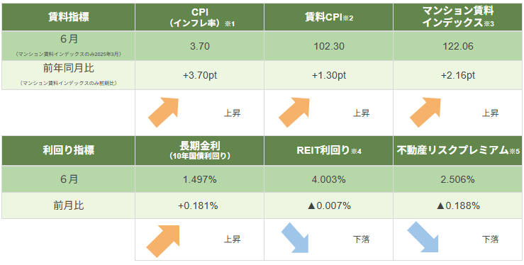 東京都区部インフレ率(CPI)の総合指数は前年同月比+3.70%上昇しています。一方、CPI内の賃料指数は前年同月比1.30%の上昇となっており、家賃が賃貸契約更新時に見直される遅行指標であることを考慮すると、CPI全体の上昇とともに賃料も今後より上昇するものと考えられます。