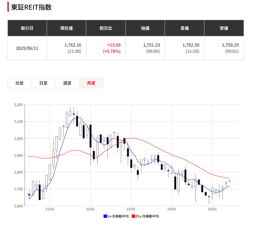 東証REIT指数も、日経平均株価ほどの上昇率ではありませんが、堅調な推移となっています。