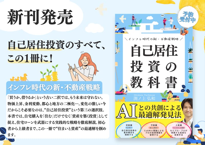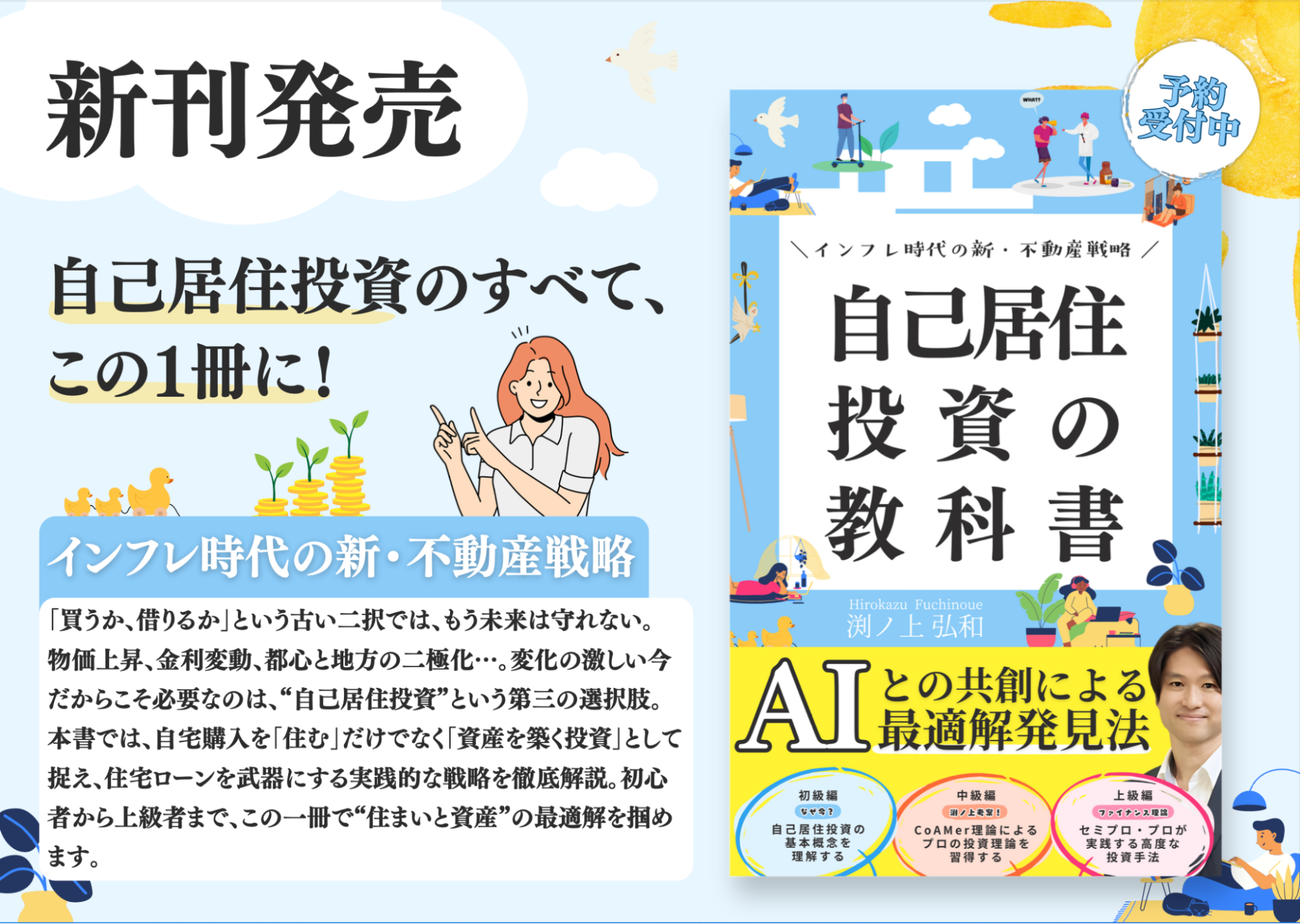 また、新刊「自己居住投資の教科書」も発売予定となっておりますので是非お目通しいただけましたら幸いです。