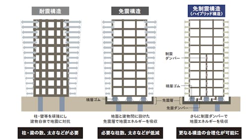 次に【建物】の持つ力です。SKY DUOでは、免震と制振を兼ね備えたハイブリッド構造を用いて災害対策が行われていることはもちろん、エントランスは2層吹き抜けで天井の高さは約8mと、開放的な構造となっています。