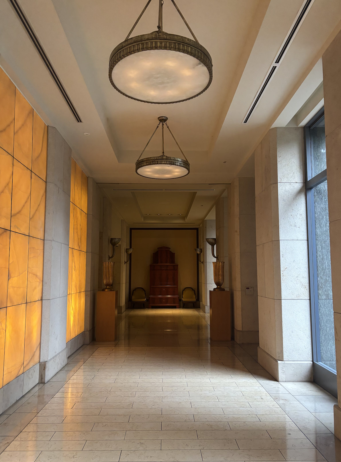 エントランスロビーには大理石が惜しみなく使われ、高い天井と相まって高級ホテルのような気品を醸し出します。随所に配置された絵画や彫刻、世界的なデザイナーが手掛けたインテリアは、一過性の流行に左右されない普遍的な美意識を感じさせ、訪れる者を魅了します。