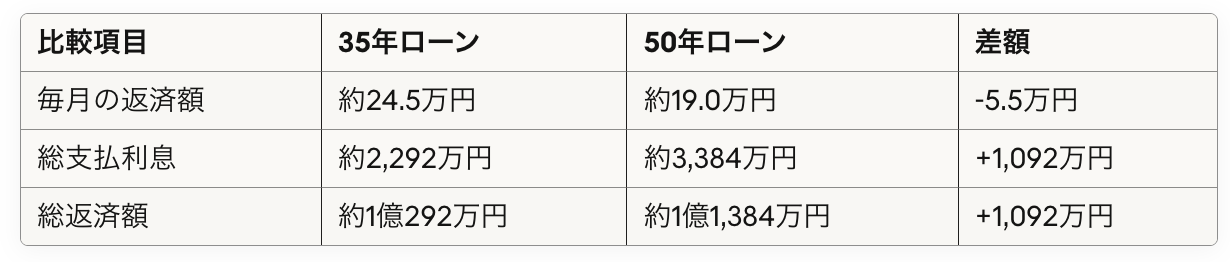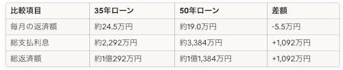 返済期間を35年から50年に引き延ばすことで、毎月の支払額を低く抑えることができます。この月額返済額の低下は、銀行の審査(返済負担率)をクリアしやすくすることを意味し、結果として、買い手は「より大きな借入枠」を獲得することが可能になります。