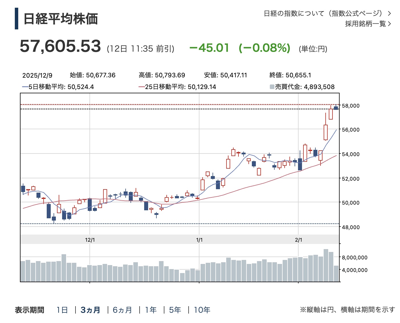 衆議院選挙で与党の圧勝を受けて、今後の積極財政とそれに伴う企業業績への期待から日経平均は大きく上昇、史上最高値を更新する勢いです。