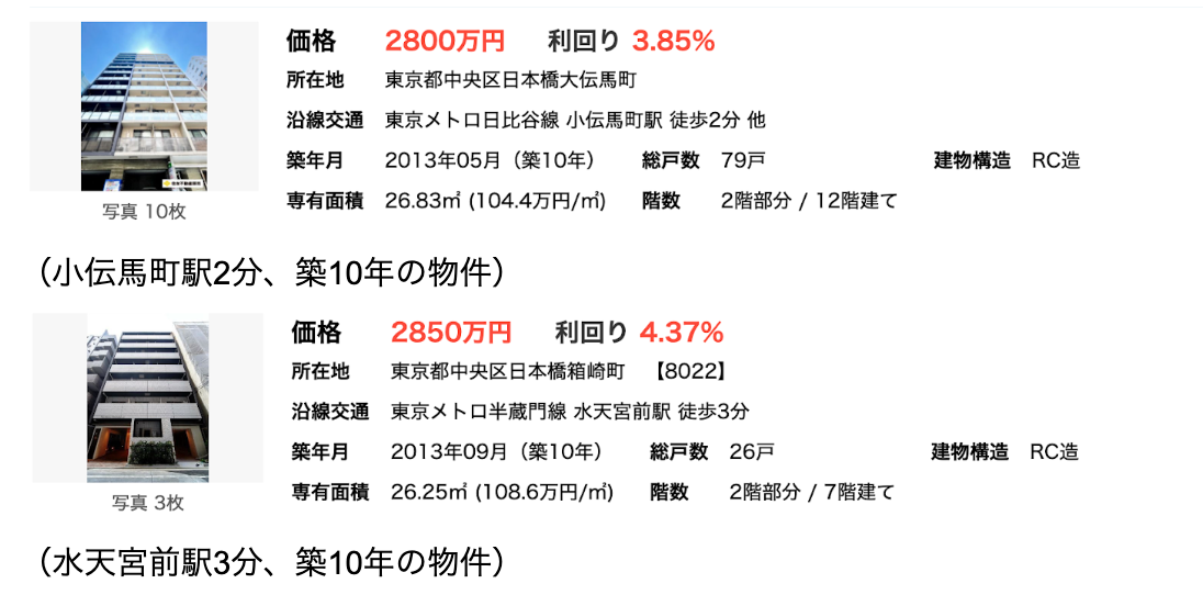 日本橋・東京駅に近いほど物件価格は上がる傾向にあるため表面利回りは下がります。
