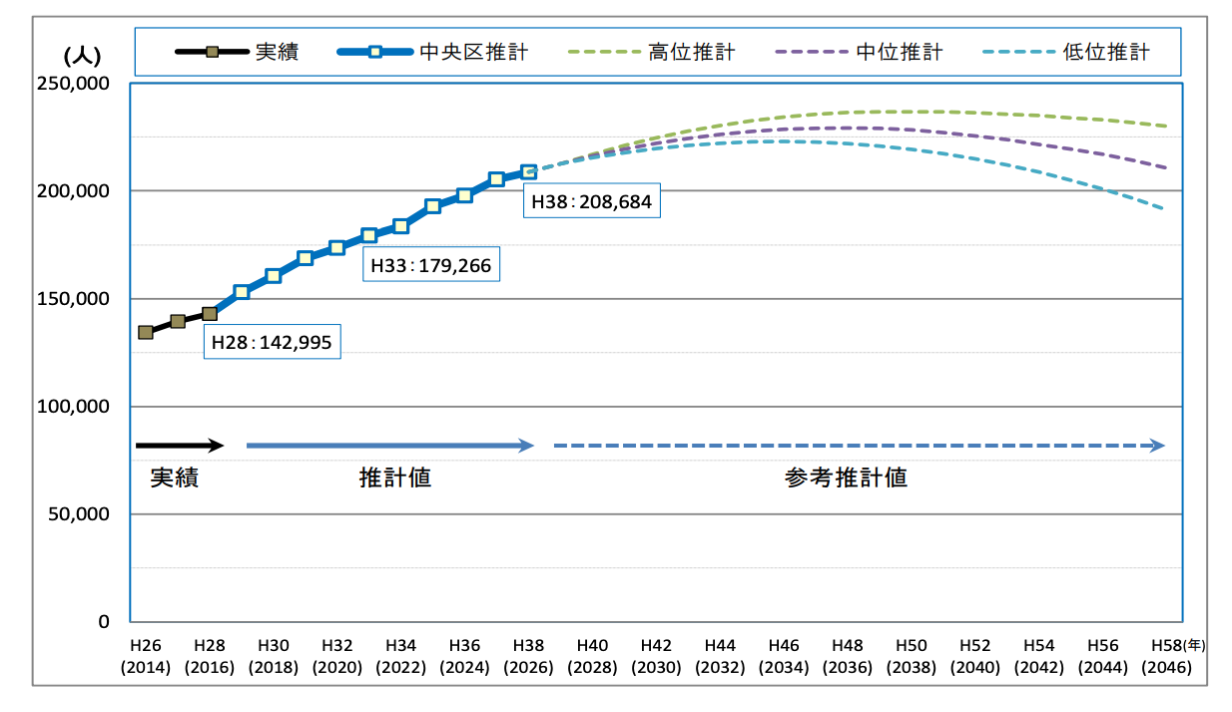 本区人口は、自然増減、社会増減、開発などの傾向が今後も続いた場合、2026年内に人口20万人を突破する見込みがあります。