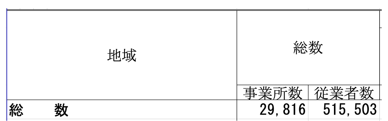 渋谷区全体の事業所数・従業員数