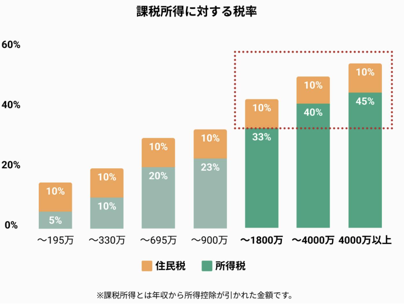 年収2.000万円のサラリーマンは、所得税と住民税を合わせて最大50%(所得税40%+住民税10%)という非常に高い税率区分に該当する可能性があります。