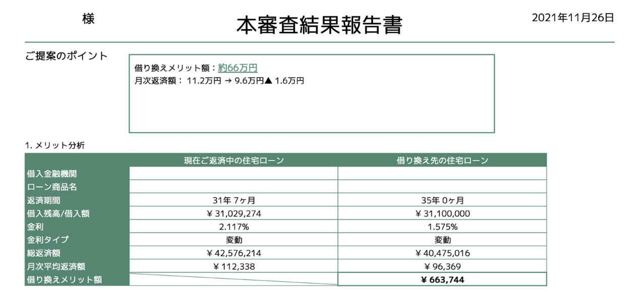 今回2.117%の金利から1.575%の金利に削減できただけでなく、3年5ヶ月の期間延長も実現されています。