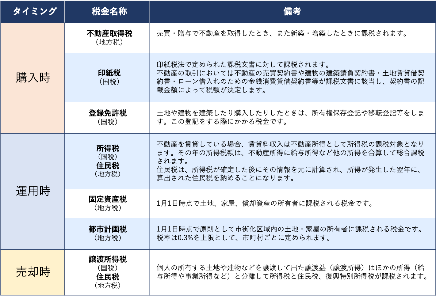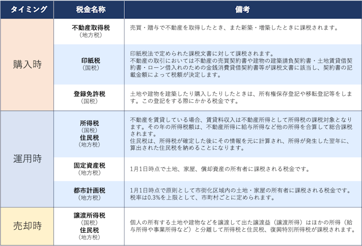 - 運用時:所得税、住民税、固定資産税、都市計画税、
